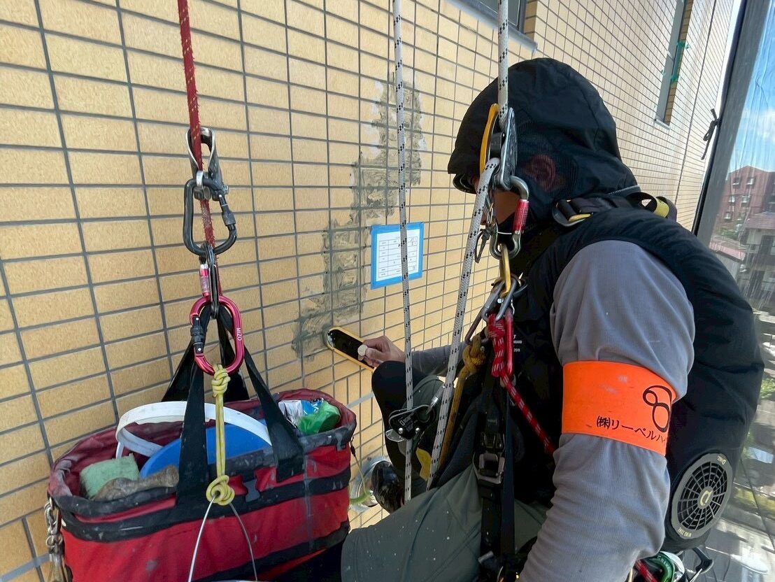 株式会社クージでは打診調査、建物診断をロープアクセスにより安価に提供できます。