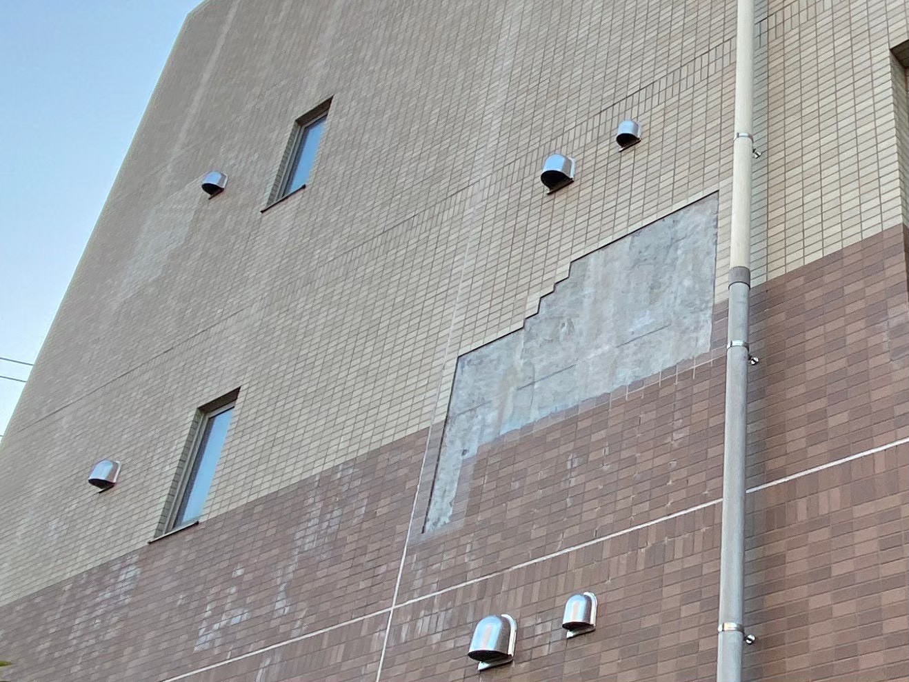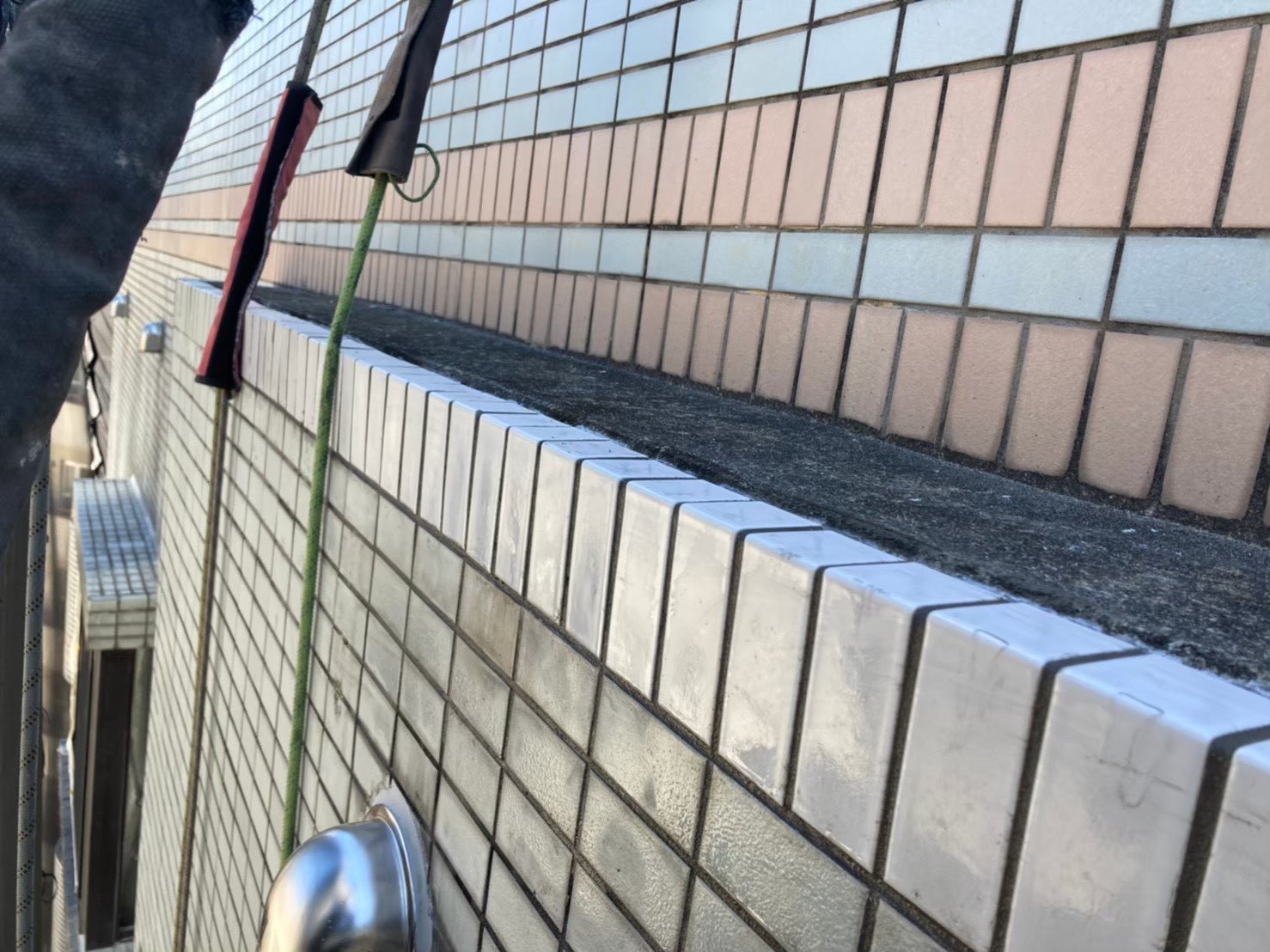 ピンニングエポキシ注入やモルタル張り、ボンド張り剥落部のタイルの撤去